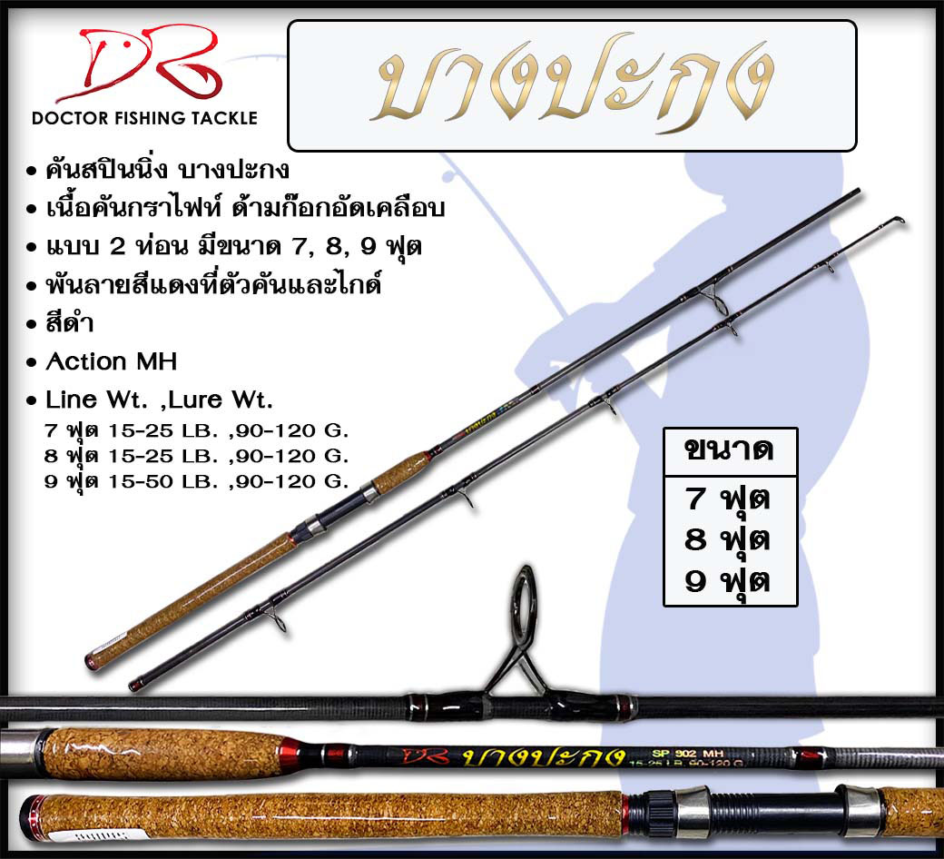 คันสปินนิ่ง บางปะกง เนื้อคันกราไฟท์ ด้ามก๊อกอัดเคลือบ แบบ 2 ท่อน