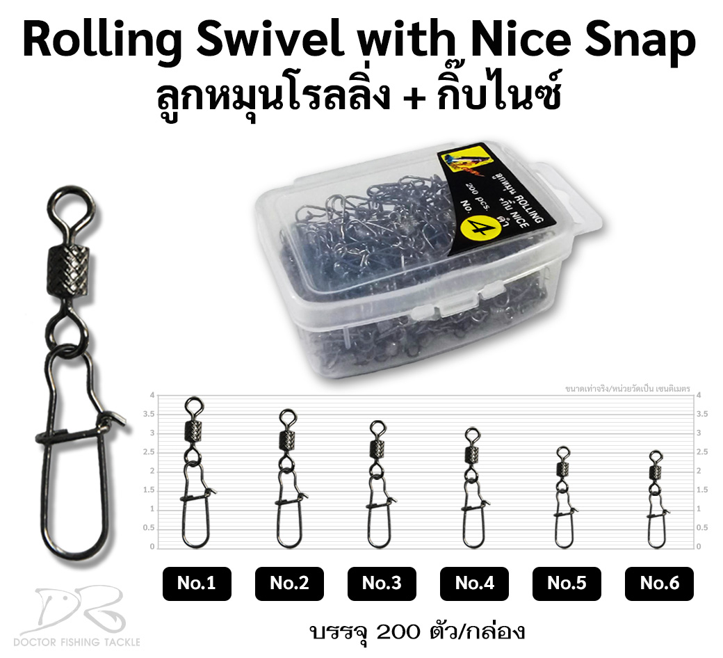 ลูกหมุนโรลลิ่ง + กิ๊บไนซ์ แบบกล่อง บรรจุ 200 ตัว/กล่อง มีเบอร์ #1, #2, #3, #4, #5, #6
