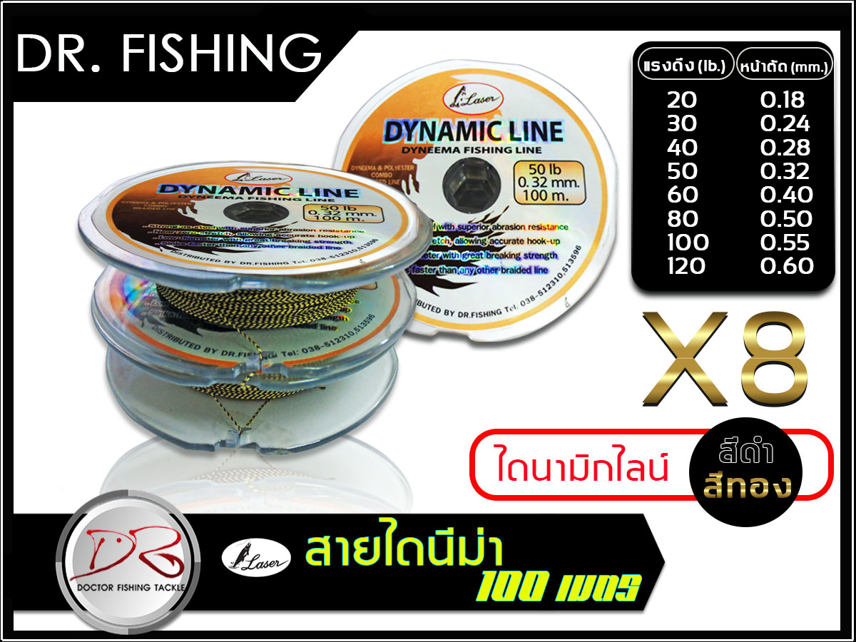 สายไดนีม่า ไดนามิกไลน์ 100 เมตร(สีดำ-สีทอง) X8