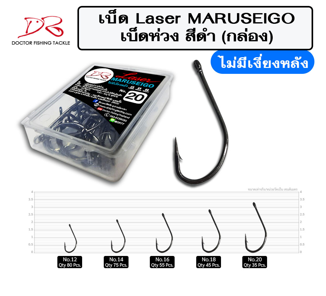 เบ็ด Laser Maruseigo ห่วง สีดำ (กล่อง)