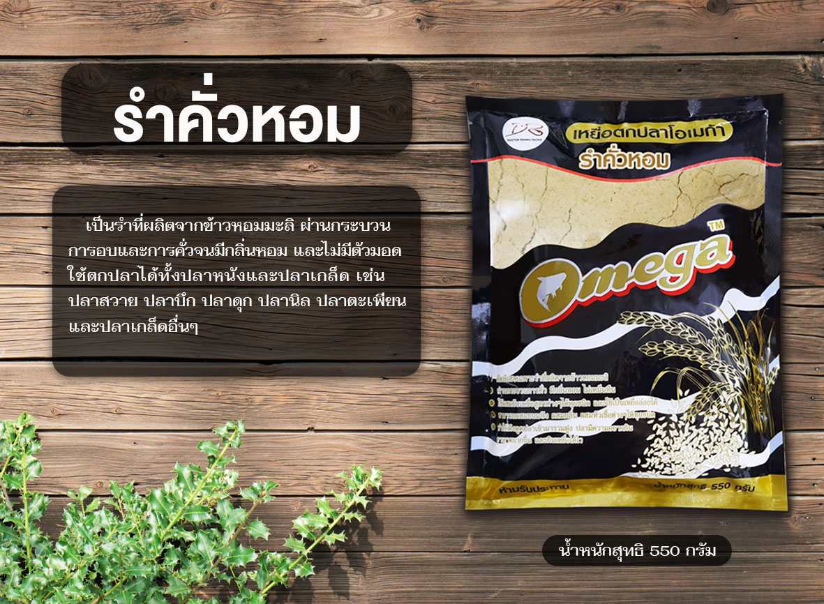 เป็นรำที่ผลิตจากข้าวหอมมะลิ ผ่านกระบวนการอบและการคั่วจนมีกลิ่นหอม และไม่มีตัวมอด ใช้ตกปลาได้ทั้งปลาหนังและปลาเกล็ด เช่น ปลาสวาย ปลาบึก ปลาดุก ปลานิล ปลาตะเพียน และ ปลาเกล็ดอื่นๆ สามารถผสมขนมปัง ผสมกลิ่น ผสมหัวเชื้อต่างๆได้ทุกชนิด