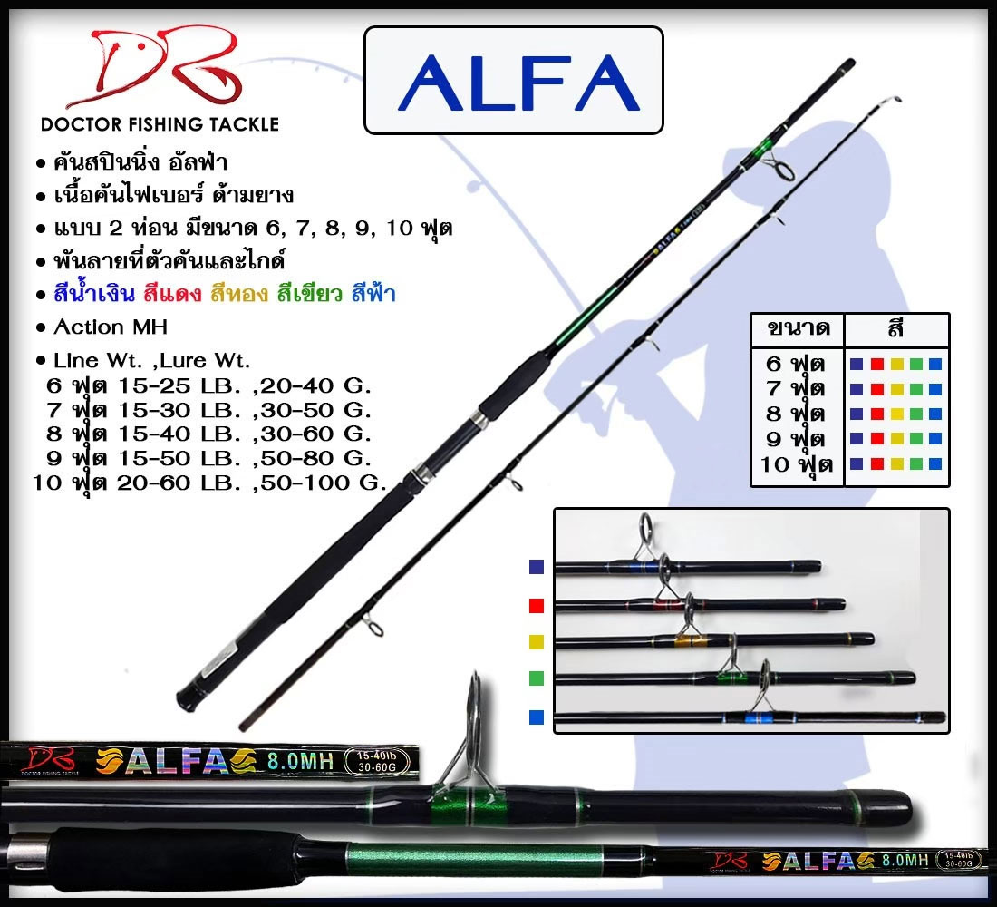 คันสปินนิ่ง อัลฟ่า เนื้อคันไฟเบอร์ ด้ามยาง 2 ท่อน