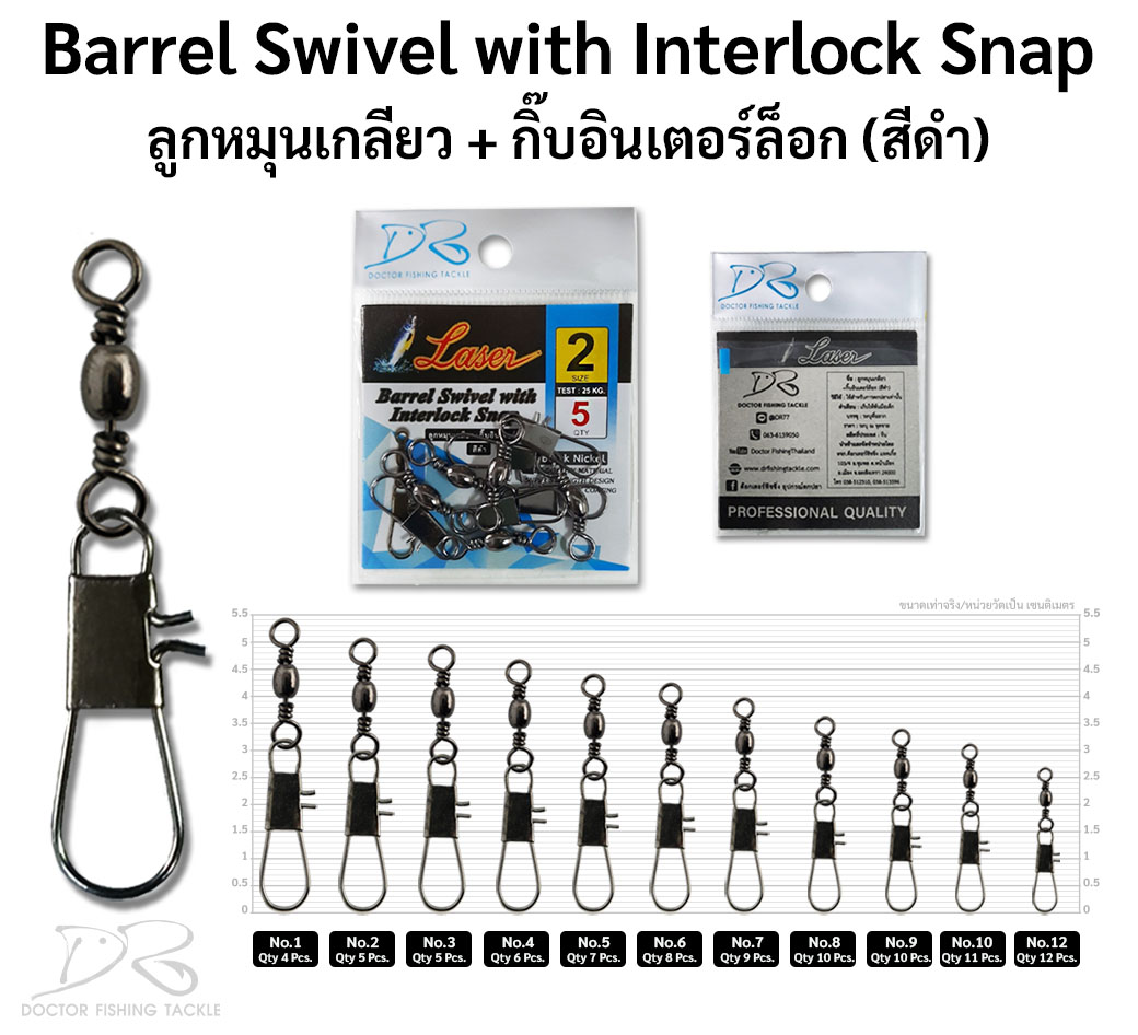 ลูกหมุนเกลียว + กิ๊บอินเตอร์ล็อก (สีดำ) แบบซอง #มีเบอร์ #1, #2, #3, #5, #6, #8, #9, #10, #12