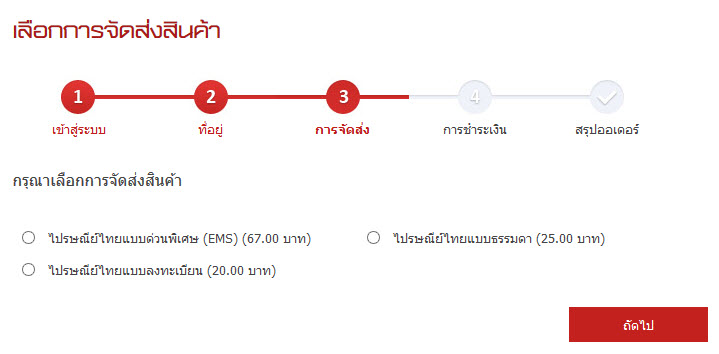 5. จากนั้นเลือกประเภทการจัดส่ง และกด ถัดไป