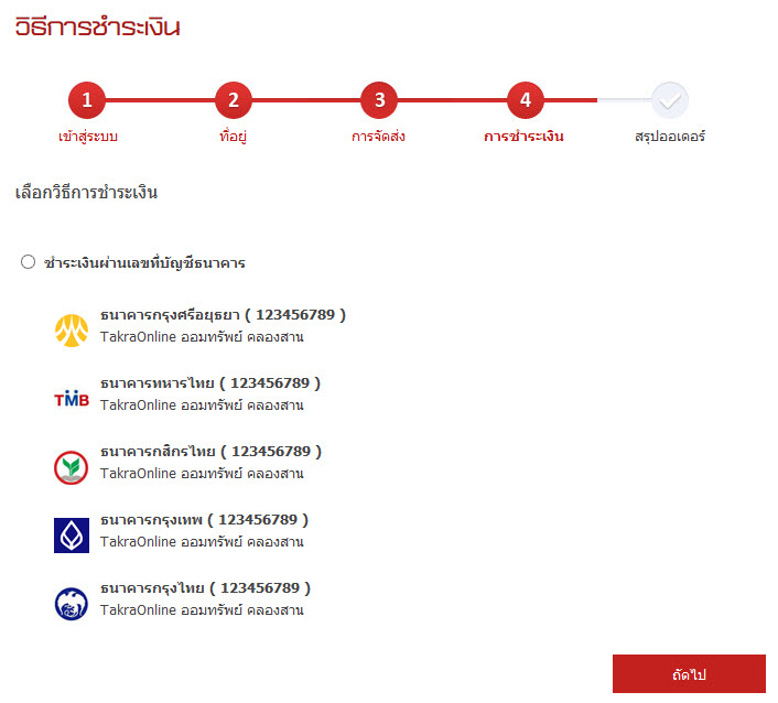 6. จากนั้นเลือกช่องทางการชำระเงิน และกด ถัดไป